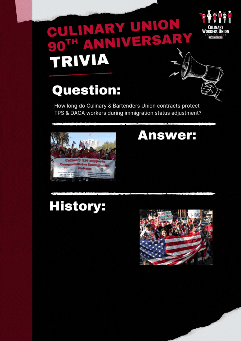 Play our trivia each week on social media to learn more about the Culinary Union's history of fighting & winning a better life for hospitality workers.