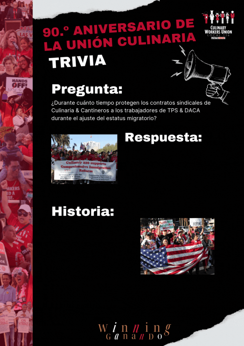 Juega a nuestra trivia cada semana en redes sociales para descubrir m谩s sobre la historia de la Uni贸n Culinaria que ha luchado por una vida mejor para los trabajadores de la hosteler铆a.