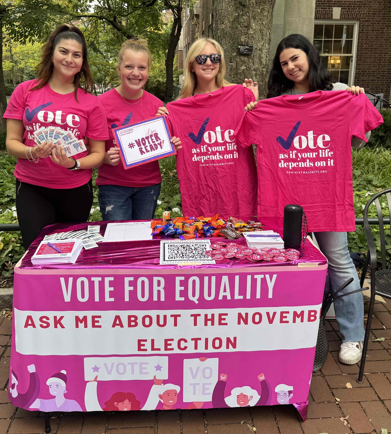 Vote for Equality, the political arm of the Feminist Majority, is a student-led project focused on ensuring college students in targeted states turn out in record numbers to vote. This year, Vote for Equality is organizing in two critical states: Virginia and Pennsylvania. Vote for Equality has hired over 140 student organizers on on 14 campuses in Virginia and 16 in Pennsylvania who are working tirelessly to get students to the poll!