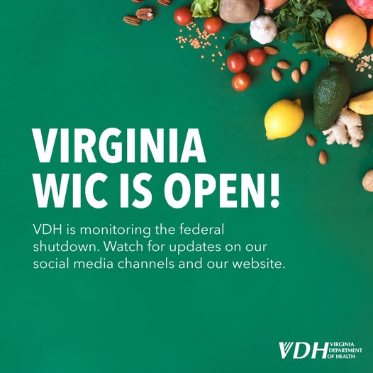 |        |             Virginians who rely on the Supplemental Nutrition Assistance Program (SNAP) will have support from a new program, outlined yesterday by Governor Youngkin. You can learn more about the Virginia Emergency Nutrition Assistance Initiative below.  |        |              Virginia #WIC is open during the federal government shutdown. WIC families can attend their appointments and shop with their WIC cards. New applicants can also apply for the program. Virginia WIC is actively monitoring the federal shutdown.   |        |              |
