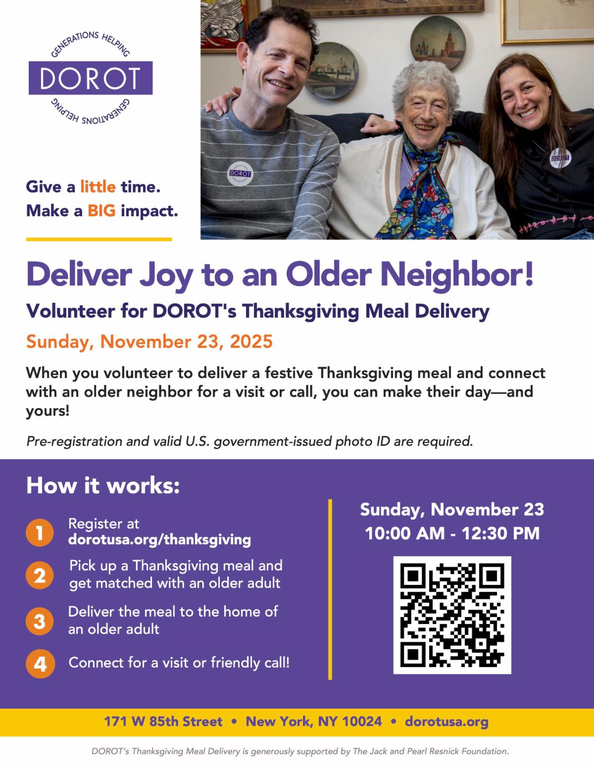 | | DOROT's Thanksgiving Package Delivery Event | | Thanksgiving Day Student Showcase | | Roosevelt Island Domestic Violence Resource Fair | | |