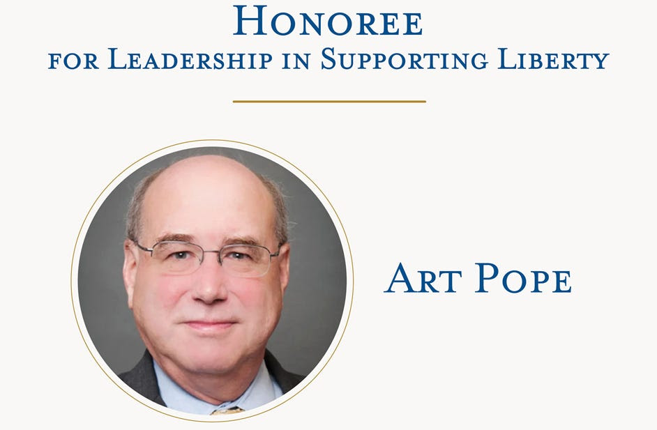 A visionary philanthropist and dedicated champion of freedom, Art Pope has demonstrated exceptional leadership through his tireless advocacy and generous support of liberty-minded initiatives. His strategic investments in education, public policy, and civic engagement have strengthened the foundations of freedom across our nation.