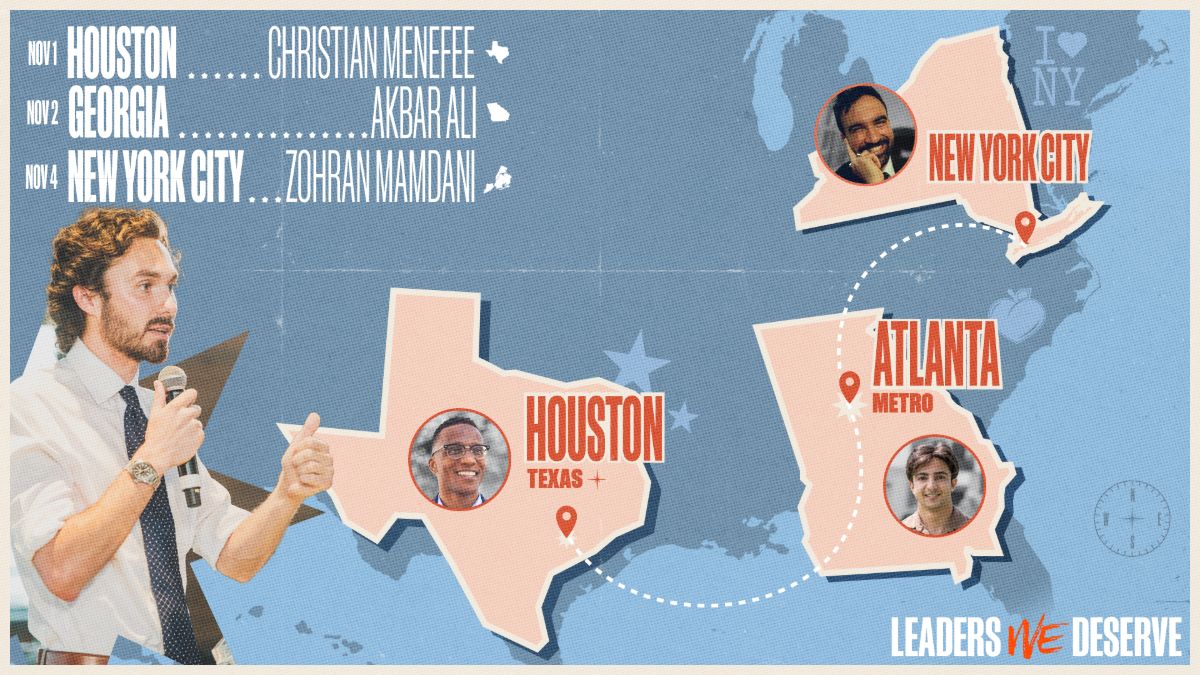 I’m hitting the road this weekend and visiting three states — Texas, Georgia, and New York — to support some of the most inspiring young leaders on the ballot next Tuesday.