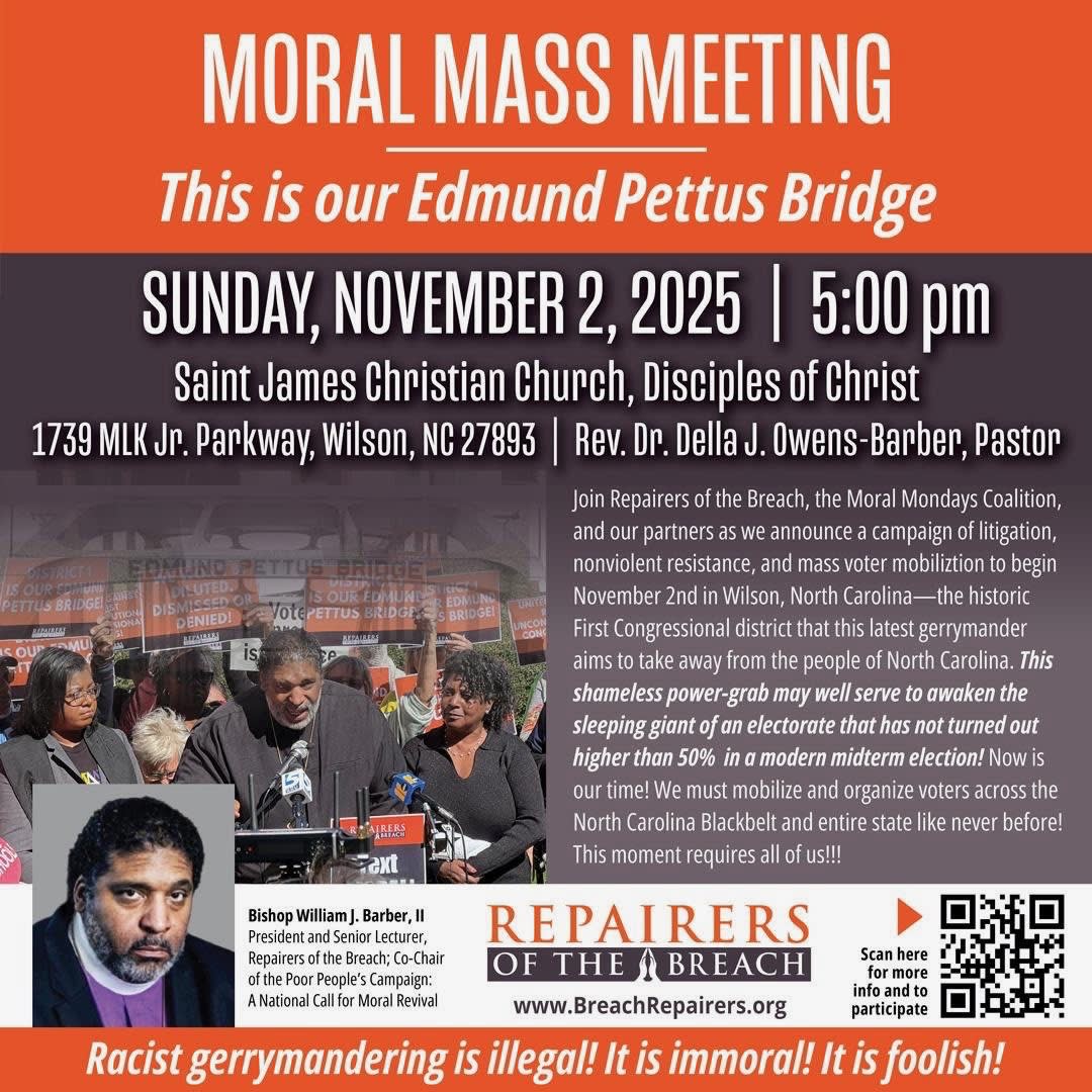 SNAP Nightmare Must Scare Us To LifeHunger pangs can unite a moral fusion movement to reclaim the tools of governmentThis morning I joined my friend Ali Velshi on MSNBC to talk about the moral crisis of Republicans holding food for hungry people hostage so they can keep the extreme cuts they made to healthcare that are projected to kill 51,000 people next year. At the Capitol on Thursday, our Moral Monday delegation prayed that the courts would order the Trump administration to use emergency funds to re-charge EBT cards today. Yesterday, US District Chief Judge John J. McConnell said that the USDA must do that under law, yet tens of millions of people who planned to buy groceries on the first of the month cannot. When people are hungry, we are called to feed them. But we must also organize their pain. Jesus said, “Blessed are those who hunger and thirst for justice.” Children are hungry on the day after Americans shared candy with whoever knocked on their doors. In this moment, we must all come together to build a voting block that can fundamentally shift the politics of this nation. And we must do it the places where those who are drunk on power have decided they are “safe.” That’s why tomorrow, on All Souls Day, we are launching a campaign to register and mobilize every eligible voter in the Congressional districts that North Carolina’s legislature just gerrymandered to create an additional vote for MAGA extremism in the US House. This is our Edmund Pettus Bridge because we know that if we come together and work together, we can both beat this illegal, racist gerrymander in court AND organize an historic turnout that has the power to upend their efforts to steal a House. Register here to join us in-person or online tomorrow and get more information about how you and your community can help this nightmare scare America not to death, but to life. You’re currently a free subscriber to Our Moral Moment, which is and always will be a free publication. Paid subscribers support this publication and the moral movement. All proceeds from Our Moral Moment are donated to organizations that are building a moral fusion movement for a Third Reconstruction of America. |