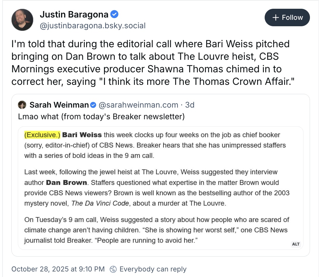 And CBS, under Bari Weiss’s leadership, mirrors this troubling trend — prioritizing commentary that normalizes authoritarian flattery over the hard-hitting journalism demanded by our democracy. The stakes could not be higher. The Trump administration’s ongoing cascade of corruption and deceit—whether it’s financial manipulations, interference with elections, encouraging racial profiling, setting armed and masked men against American citizens, prosecuting political enemies for invented wrongdoing, seeking to prevent doctors and hospitals from providing care for LGBTQ youth, or assaults on democratic institutions and more — requires unflinching coverage. It demands the willingness to ask difficult questions and expose uncomfortable truths, even when they rattle powerful figures or unsettle corporate backers. The consequences of silencing these voices are already visible: distortions of reality, unchecked abuses of power, and the further fragmentation of American society, as well as the erosion of public trust. But remember, it hasn’t always been this way, and together, we have the power to create the America we all deserve — not only the most powerful and, if the Trump Administration has its way, white in our country. America’s most significant progress —civil rights advancements, government accountability, systemic reforms — were made when the free press took seriously its sacred duty. When journalists held presidents accountable regardless of their party or connections. That tradition of courage is alive today — not in conglomerate-controlled media, but on independent platforms like Lincoln Square Media, which are free from the influence of millionaires, billionaires, or sprawling corporate conglomerates. Lincoln Square and you, the Lincoln Loyal, do not fear the truth or back down from pressure or threats from the most corrupt presidency in history. By becoming a paid subscriber, you’re not just supporting independent media — you’re supporting a movement. A movement toward transparency, resilience, and democracy. Your subscription underwrites the relentless pursuit of facts amid chaos and confusion. It empowers independent media to serve as a watchdog, unbound by the interests that constrain much of the mainstream press. In this critical moment, your choice matters. Please join us as a paid subscriber today. Stand with Lincoln Square in defending the truth, demanding accountability, and reclaiming the role of the free press as the guardian of our democracy. Lisa Senecal is Lincoln Square’s Founding Editor. You’re currently a free subscriber to Lincoln Square Media. For full access to our content, our Lincoln Loyal community, and to help us amplify the facts about the assault on our rights and freedoms, please consider upgrading your subscription today with this limited-time offer that ends Oct. 31. Get all-access and save 30% off forever. Lock in this special rate today. Not ready to subscribe? Make a one-time donation of $10 or more to support our work amplifying the facts on social media, targeted to voters in red states and districts that we can help flip. Every $10 reaches 1000 Americans. The Truth needs a voice. Your donation will help us amplify it. Want to help amplify this post? Please leave a comment and tell us what you think. |