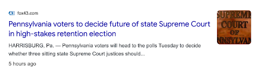 Losing this court means MAGA can redistrict the PA congressional map blood red, uphold an extreme abortion ban, and rig the 2026 and 2028 elections ensuring that Democrats never win this key swing state and its 19 electoral college votes again.