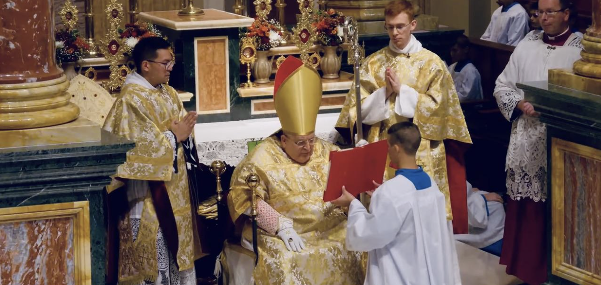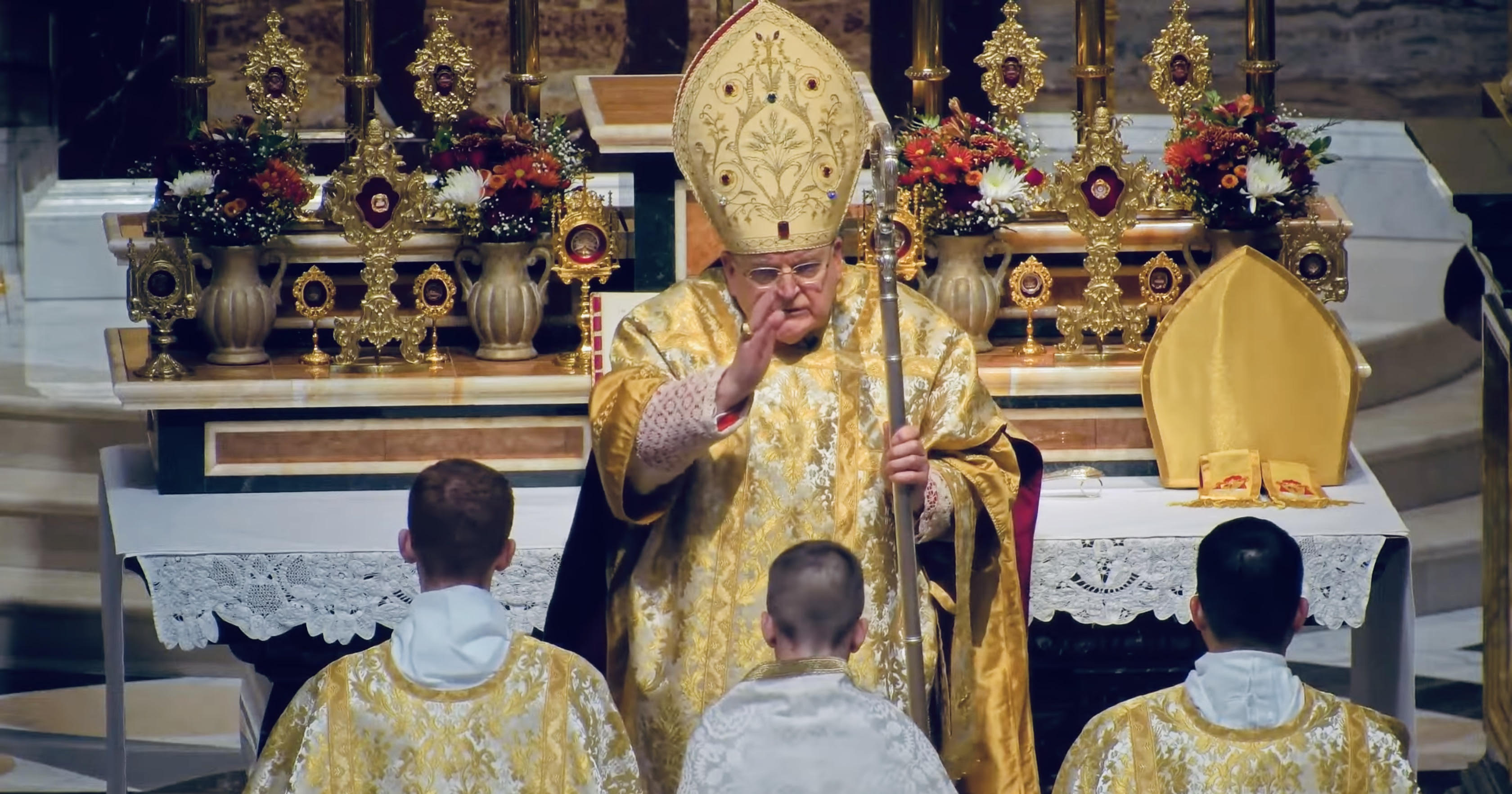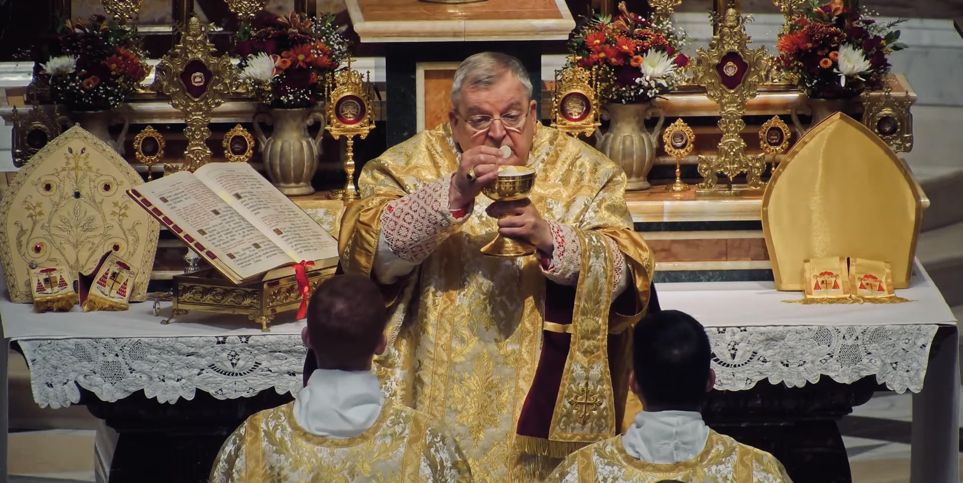 Holy Mass. His Eminence’s red skull cap was worn and not a bishop's
