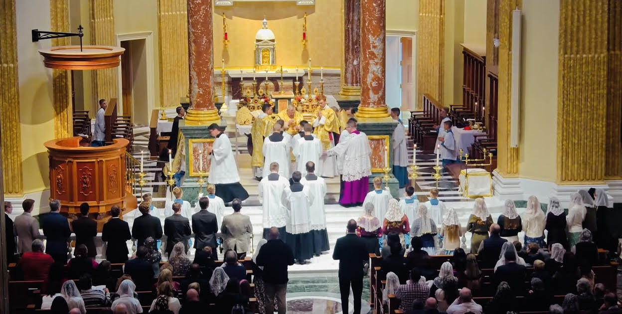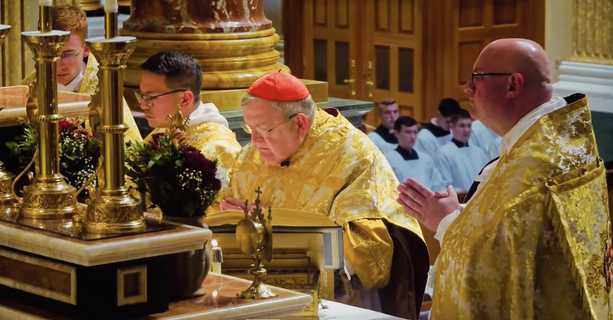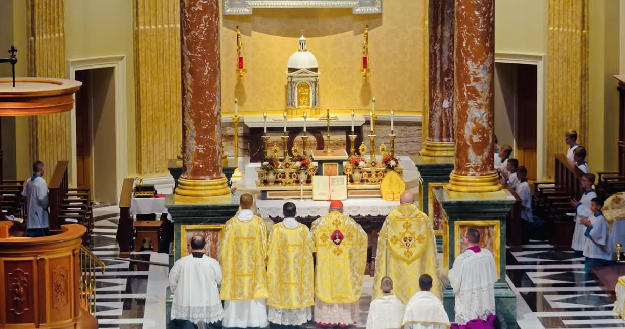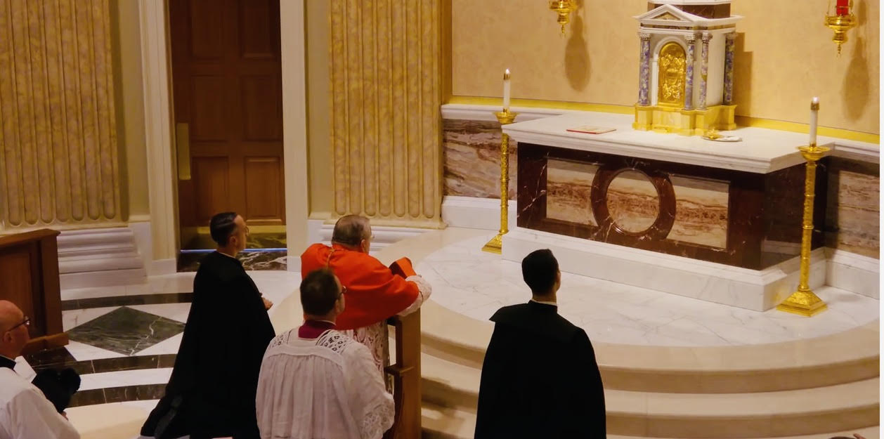 Holy Mass. His Eminence’s red skull cap was worn and not a bishop's
