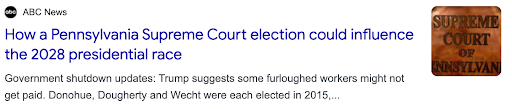 If MAGA’s sinister plot succeeds, they will seize control of Pennsylvania and will implement an extreme abortion ban, redistrict the PA congressional map making it blood red, and rig the ‘26 midterms and ‘28 presidential in the penultimate swing state - 19 electoral college votes down the drain.