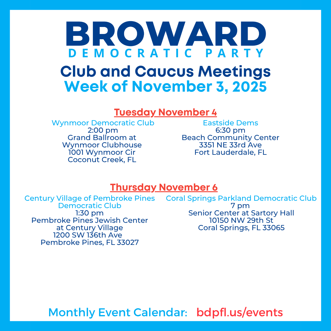 Join the Broward Democrats for their first ever Pancake Breakfast and Canvass on Saturday November 15th. Enjoy fresh pancakes cooked and served by your elected officials.