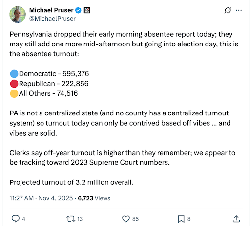 Over 3 million Pennsylvanians are expected to cast ballots in total. That means 2 million+ votes are still up for grabs right now.