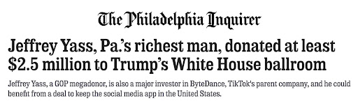 The state’s richest man, Jeff Yass, has been preparing for the moment he will be able to own the courts. He recently plunked down at least $2.5 million for Trump’s corrupt WH Ballroom to curry favor with Trump ahead of the results of this election: