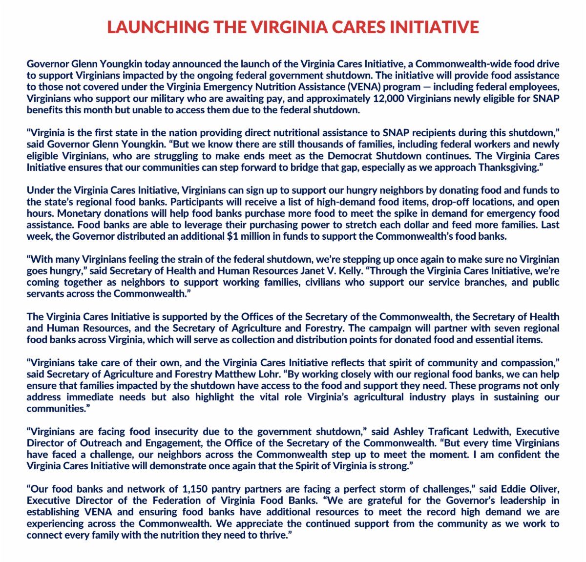 Special Event with Governor Glenn Youngkin and First Lady Suzanne Youngkin
