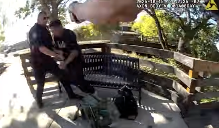 Body camera footage shows an officer-involved shooting of a man who took a knife from a backpack and charged at an officer, the Rogue Valley Times reported. The Oct. 15 confrontation occurred following a 911 call from a woman who said that the suspect had refused to leave her apartment, according to the report. Eagle Point Police Chief Jim Hamilton was the first to contact the suspect, who was sitting on a public bench. Hamilton activated his body camera and attempted to question the suspect about the reported incident. The suspect was defensive, insisting that the woman invited him to the apartment. “I’m late to the party here, right? I don’t know what’s going on, so I’ve got to find out from you,” Hamilton said. “That’s why I’m talking to you. There’s two sides to every story.” The suspect initially refused to identify himself and then provided a false name. Dispatch later confirmed he had an extraditable warrant from California for a parole violation related to sexual assault. Officer Marc Slagle arrived on the scene and, after speaking with him briefly, informed the suspect he was under arrest. At that point, the suspect retrieved a knife from one of his backpacks and charged at Slagle, prompting Hamilton to deploy his TASER, bringing the suspect to the ground momentarily.