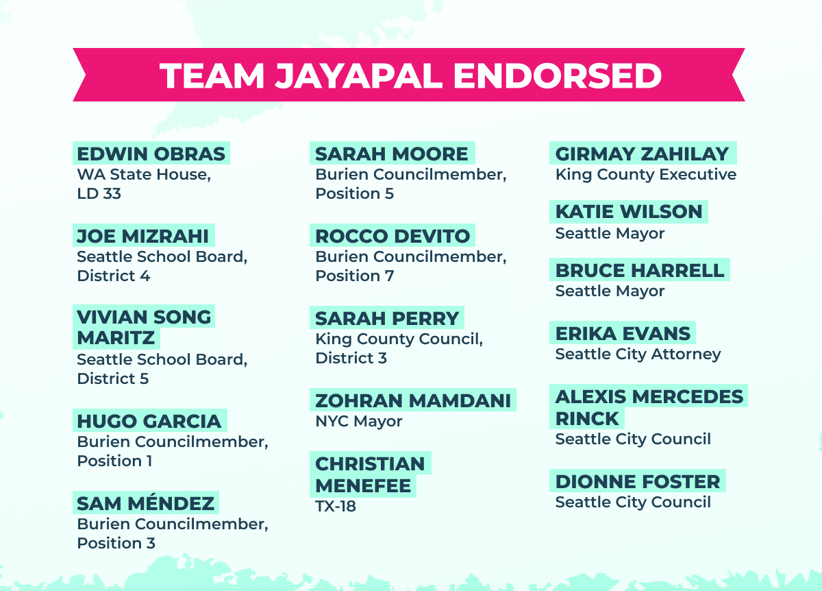 I’ve proudly endorsed progressive leaders on the ballot today, both here in King County and across the country, who are fighting for working families and pushing back on authoritarianism. They include: