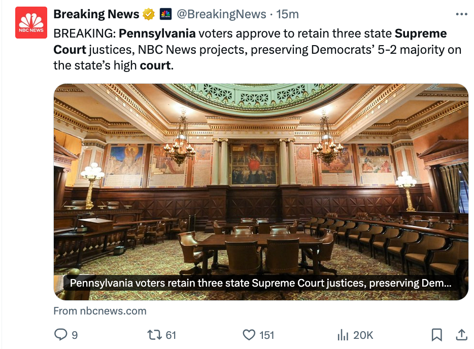 In 2026 there will be more courts for us to defend in Arizona, Michigan, and Georgia, but tonight we can rest easy knowing that the Pennsylvania Supreme Court is safe.