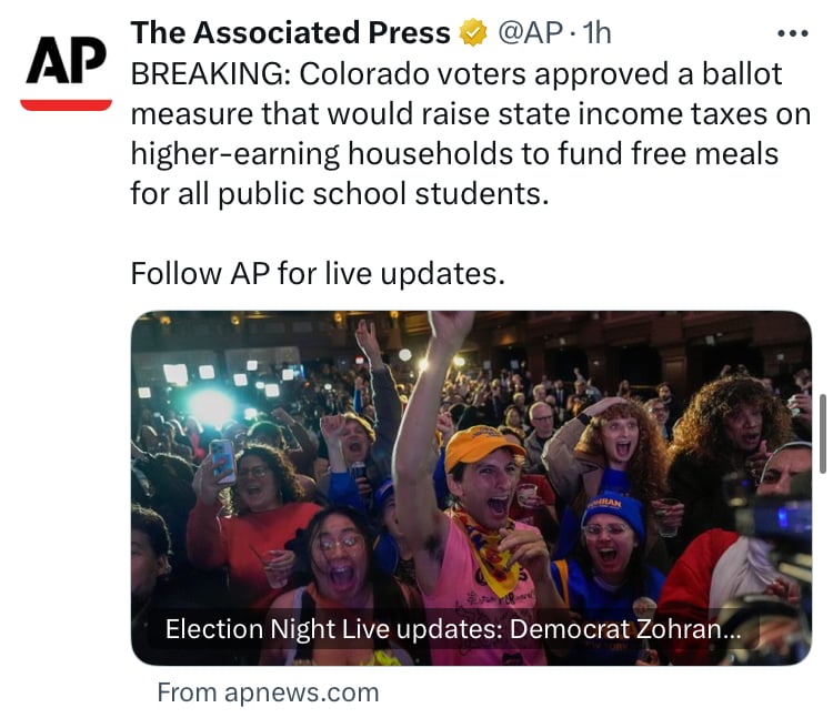 In Colorado, voters overwhelmingly approved a tax increase on wealthy earners to fully fund free meals for all kids in public schools.