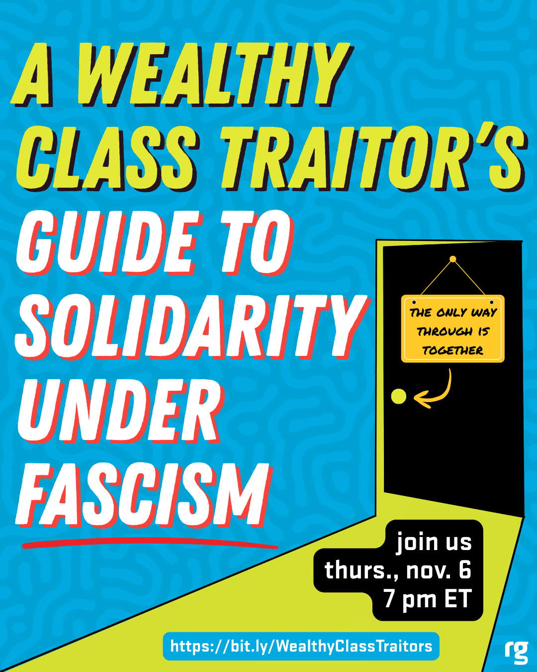 RG member Katie Gavin recently joined We Can Do Hard Things to talk about inheritance, class, and radical honesty. She shares her story of growing up with wealth, navigating personal and political responsibility, and learning to live her values through redistribution and organizing in the last 20 minutes of the podcast!