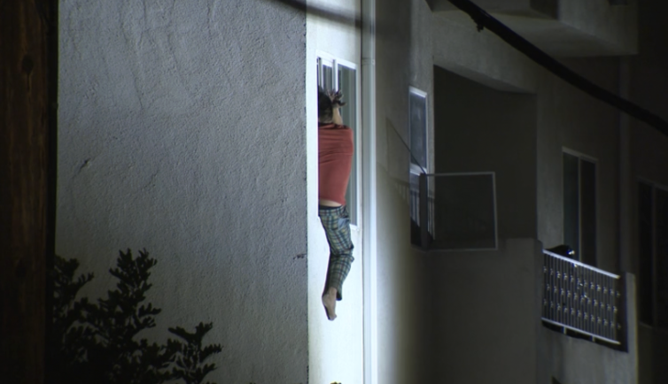 A man was seen hanging out of a window during a standoff in which he was throwing items around, police say. Los Angeles Police Department officers were called out to the 12300 block of Hart Street around 12:51 a.m. after it was reported a person entered an apartment building and started throwing things, a department spokesperson confirmed. Reports from the scene indicate that the man was throwing things off a balcony; however, the spokesperson did not confirm if that was the case or if the items were thrown around inside. Video captured by KTLA photojournalist Dan Lunsford shows the man sitting on an upper story windowsill, with one half of his body out of the window. He was there for at least a minute, according to the footage, before he decided to climb back inside. According to LAPD, after initially refusing to come out, the man was taken into custody. He was seen being taken into an ambulance by wheelchair. It is unclear whether the man will be charged with any crime.