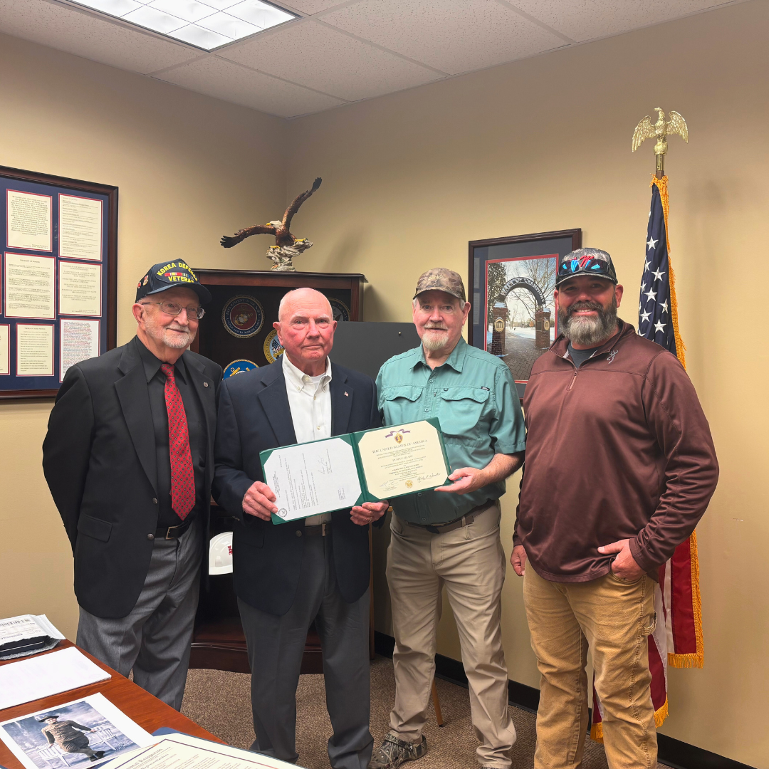 I recently had the honor of presenting three medals, including the Purple Heart, to the family and friends of Private First Class Thaddeus Buchanan Green, a World War I veteran. When the family first tried to obtain his medals, having been approved and awarded in November of 2024, they were told it would take years, possibly until 2028. Thanks to my office and outstanding staff, we were able to secure them within two weeks. It was a great privilege to present PFC Thaddeus Green's medals to his son, David Green, a Vietnam Era veteran who served in Korea in 1968.