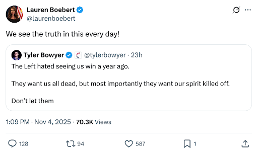 I don’t want Lauren Boebert dead. I don’t want anyone on the right dead.