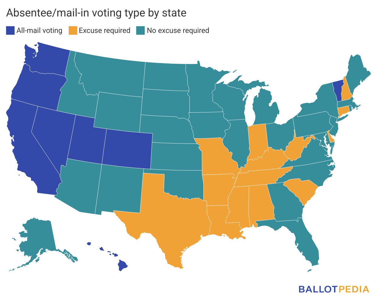 Click here for more information on absentee/mail-in voting in each state. Click here for more information on all-mail voting.