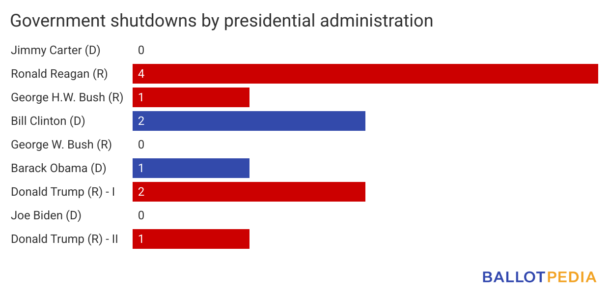 This is the first government shutdown of the second Donald Trump (R) administration. There were two shutdowns during Trump’s first term. The most shutdowns – four – occurred during Ronald Reagan’s (R) two terms between 1981 and 1989.