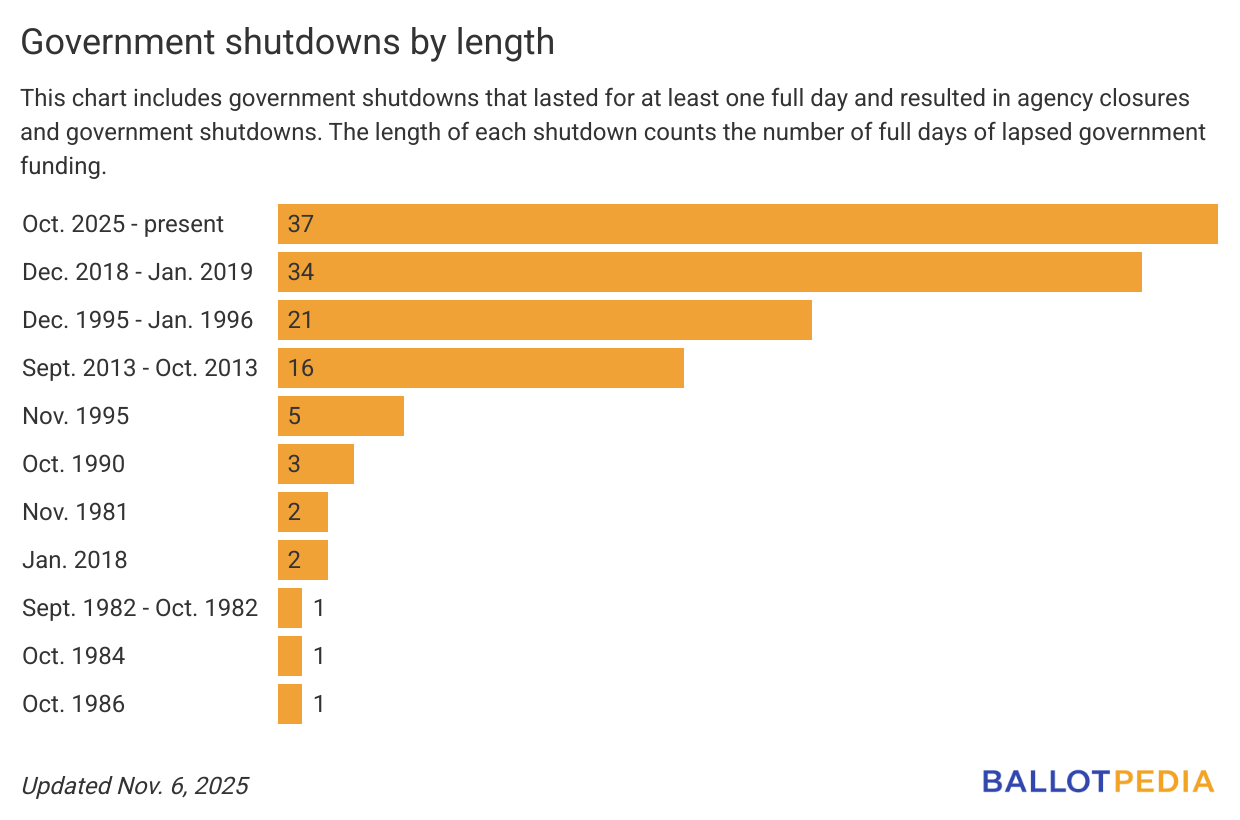 November 4th was the 35th day of the federal government shutdown making it the longest shutdown in U.S. history. It has outlasted the shutdown that ran from December 2018 to January 2019, which lasted 34 full days.