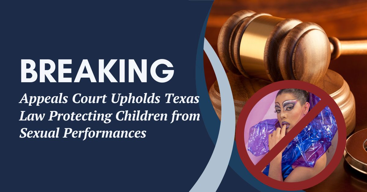 Yesterday the New Orleans-based Fifth Circuit Court of Appeals handed the State of Texas a major win by overturning the ruling of a Houston federal judge who blocked Senate Bill (SB) 12, the law passed by the Texas Legislature to protect children from being exposed to sexualized content at drag shows.