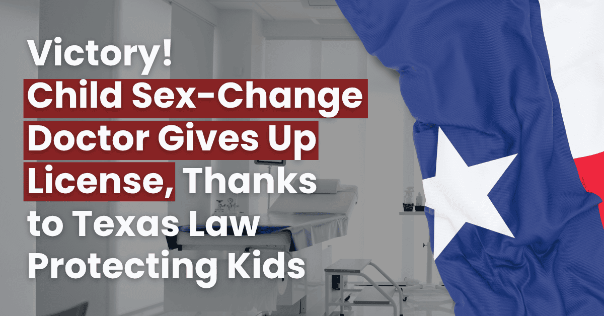 Recently, a Texas doctor who performed sex-change operations and procedures on children surrendered her Texas medical license and left Texas. Dr. May Lau was sued last year by the Texas Attorney General for violating a Texas law passed in 2023 that bans sex changes for minors, SB 14.