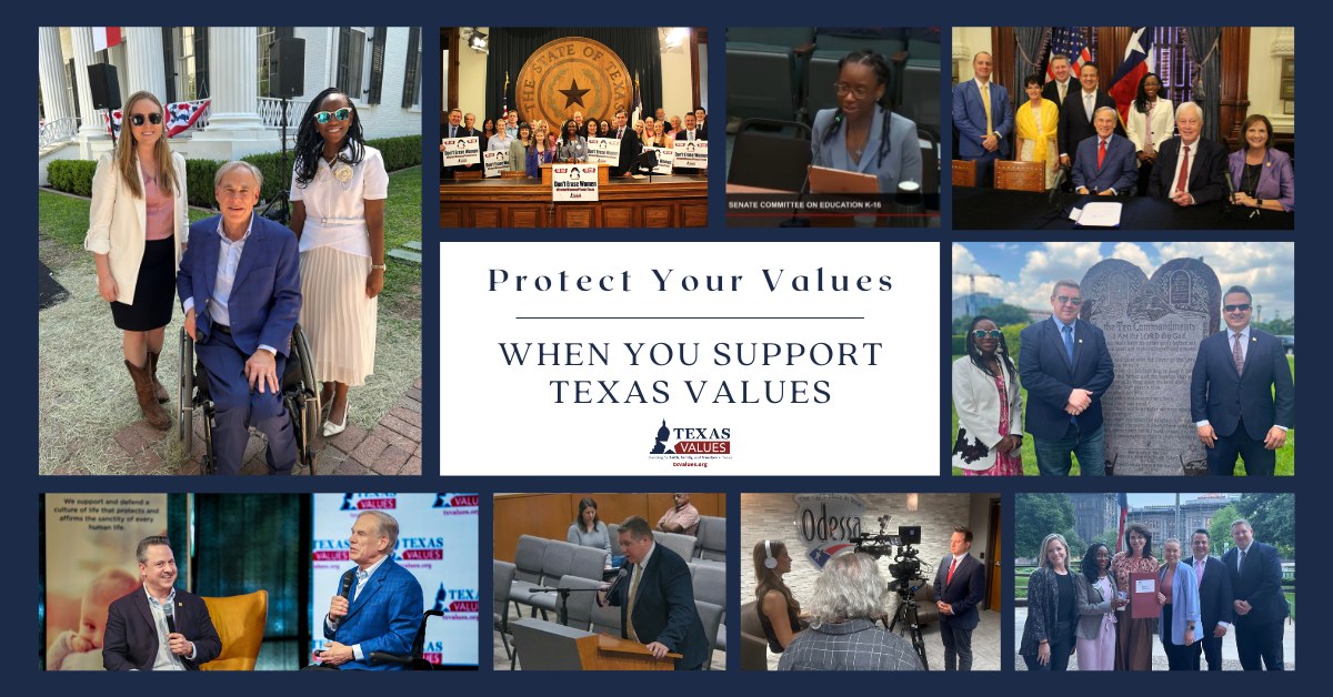 Texas Values is a 501(c)(3) non-profit organization dedicated to standing for faith, family, and freedom in Texas. More information is available at TXValues.org
