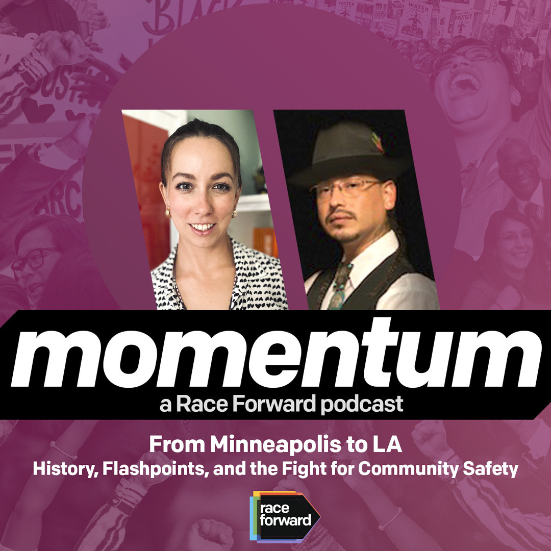 In this episode, Race Forward’s Alex Frank talks with John Pineda, Deputy Director and founding member of the MILPA (Motivating Intergenerational Leadership for Public Advancement) Collective, about how communities from Minneapolis to Los Angeles are redefining public safety. Together they reflect on the lasting impact of state control, surveillance, and militarization, and the ways communities have responded through cultural organizing, resilience, and healing.