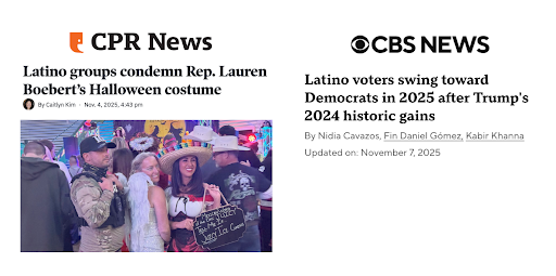 In the 2025 elections on Tuesday, Latino voters in CA, NJ, VA, and PA swung hard in the other direction voting overwhelmingly in favor of Democrats. Exit polls showed that many voted directly to oppose MAGA.