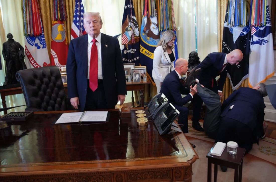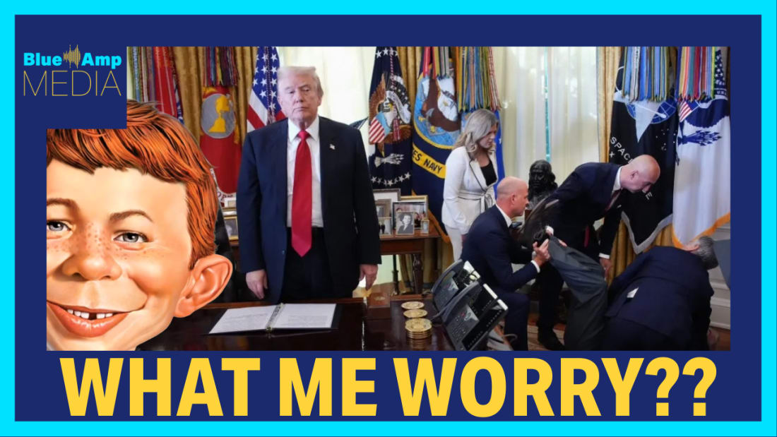 Because this is our dead-eyed, Dusky Shark President. A foul, necrotic wench who should be indicted again, this time for blowing irony’s head off with a shotgun. The type of man who’s vexed by someone keeling over in his office, showing all the compassion of a hyena with its leg caught in a trap. Or an Elon Musk. A human goiter who surrounds himself with similarly sick individuals who shoot puppies in the face, and whose moms write them un-fan mail about how they allegedly abuse women. And a guy who covers everything with gold because he thinks it will somehow imbue him with importance and elite status. And who uses food funds to build a Second Estate ballroom. “His top priority,” per his twenty-something mouthpiece married to a Social Security recipient. The office of the presidency now resembles the worst after-party you skipped because you had to work in the morning. Walls turned golden, moldings fattened, sign slapped beside the “Oval Office” label so no one misses the bling, as Americans watch their food and health care vanish, their workers deported and their jobs disappear. There’s so much gold-generated gaudiness in the Oval Office that, if Goldfinger himself wandered in and looked around, he’d pause, tilt his head, and mutter: “What the f*k is wrong with this guy?” At the end of the day, this isn’t just a “bad look” moment—it’s the crystallization of a presidency more preoccupied with the appearance of power than the exercise of responsibility. Yet, a president who watches a man collapse and is bemused, then disgusted, is the perfect wretch to run the rancid Republican Party and its MAGA movement. A Cult of Cruelty that’s brought our teetering democracy to the edge. One that claims to be anti-trans, but has somehow transitioned Jesus Christ into Ayn Rand. Americans are going hungry, and a classless jack-in-the-box is gilding everything. A narcissistic dunce whose sociopathic shrug in the White House is the best single moment to explain everything that’s wrong with our rotting republic. There must be Romans peering across the ocean, a knowing look in their eyes. They’re surrounded by the remnants of their own Trump Era that tossed their great experiment into the large compost heap of history. Unless we move forward with a boldness and determination they lacked two millennia ago, they know what’s coming. ✨✨Our Victory Celebration Sale Ends At Midnight!✨✨🌟🌟BAM Merch Feature: Smash! Logo Tee🌟🌟Invite your friends and earn rewardsIf you enjoy Blue Amp Media, share it with your friends and earn rewards when they subscribe. |