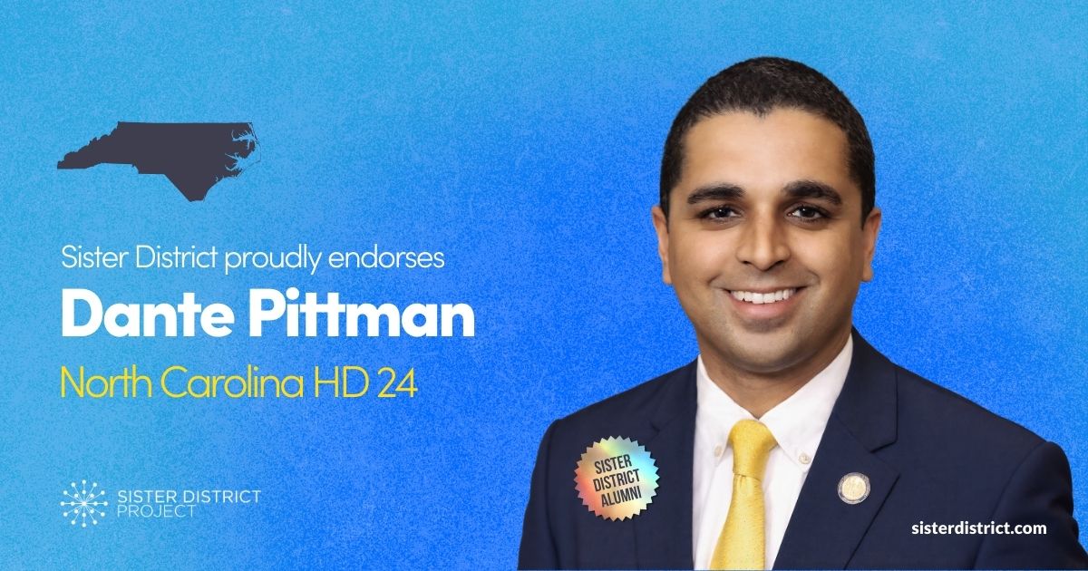 Representative Dante Pittman is serving his first term in the North Carolina House representing District 24 after Sister District worked to send him to Raleigh. A lifelong Wilson resident, UNC–Chapel Hill graduate, and Captain in the North Carolina National Guard, Dante has quickly emerged as a strong advocate for public education, healthcare access, and rural economic development. He has fought Republican voucher schemes that would drain millions from local schools, while championing policies to support working families and small businesses. Learn more about Dante on our candidate pages.