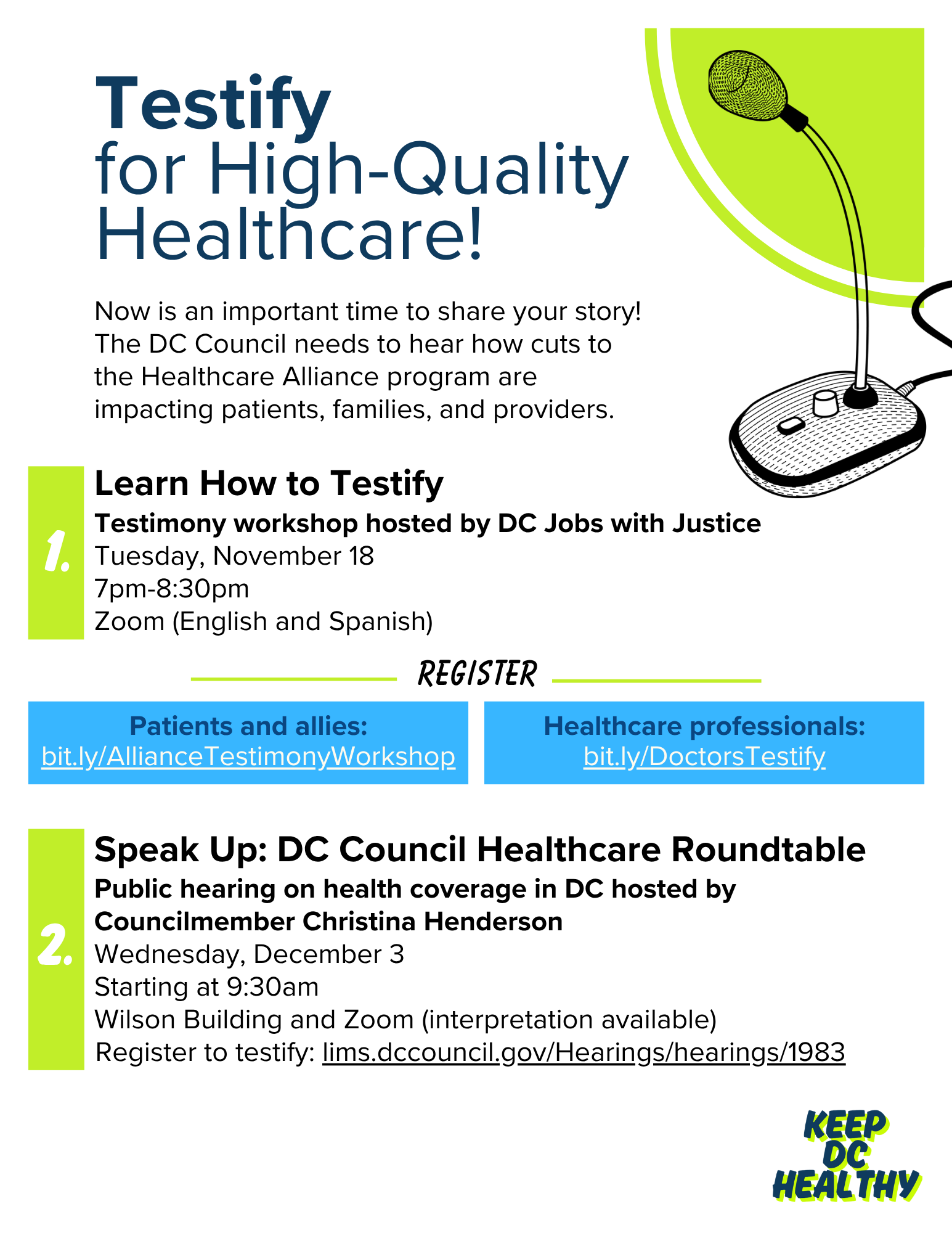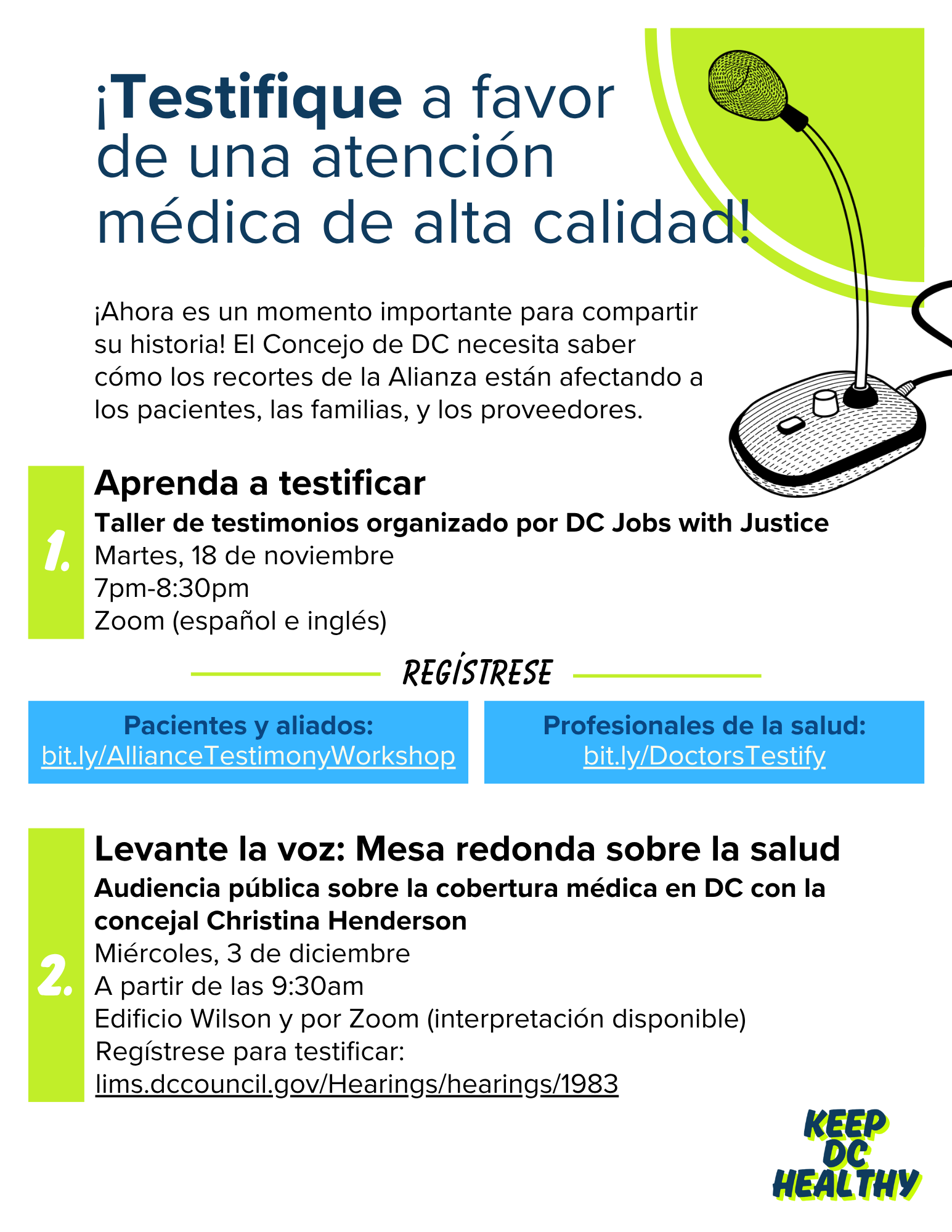 ¡Tenemos otra oportunidad para hacer oír nuestra voz! El miércoles 3 de diciembre de 2025, la concejal Henderson celebrará una mesa redonda sobre la Alianza de Salud de DC y Medicaid, incluido el nuevo Plan Básico de Salud.