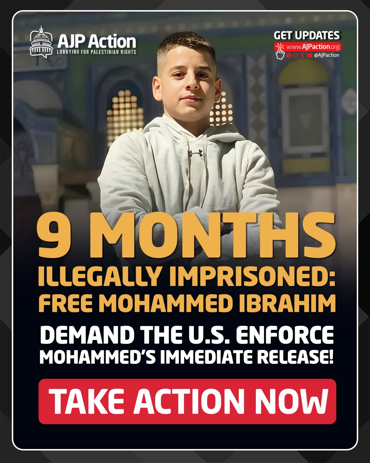 Trial is delayed again, and the Trump Administration continues to abandon a Florida teen in Israeli prison Dear Email, For over nine months, Mohammed Ibrahim, a 16-year-old American citizen from Florida, has been illegally imprisoned and tortured by Israel. Now, his trial has been postponed to December 15th, a deliberate delay that will force him to spend one day shy of ten months behind bars for an accusation of throwing stones, a charge he only "confessed" to after being beaten and extorted. Mohammed was only 15 when he was blindfolded and taken by Israeli Occupation Forces (IOF) from his family's home in the occupied West Bank. According to Defense for Children International - Palestine, he has suffered “deplorable conditions,” including being “beaten with rifle butts” and subjected to “starvation” and medical neglect. Israel’s systematic torture has had a devastating effect, causing him to lose one-third of his body weight. He also contracted scabies in prison and was then thrown into isolation. For the entire duration of his detainment, his family in Florida has been completely denied contact with him, unable to speak to or see their son outside of a courtroom camera. Mohammed's case is a horrific injustice, but it is not an exception because of his American identity. Since October 7th, 2023, Israel has abducted over 18,500 Palestinians, including workers, doctors, journalists, and students. To date, at least 360 Palestinian children are detained without charge or trial in Israeli military prisons, facing the same system of torture and abuse. No child, Palestinian or American, should ever endure this. While Mohammed suffers, elected officials have failed him. His own representative, Mike Haridopolos, has not met with the family or made a single public statement demanding his release. And after the brutal, settler-led killing of Mohammed’s cousin, another American citizen named Sayfollah, Mike Huckabee promised the family he would fight for Mohammed's freedom, yet he has done nothing. Sayfollah is one of six U.S. citizens killed by Israeli forces or settlers since 2023. The State Department’s apathetic response to these cases is a glaring example of both the United States’ and Israel’s dehumanization of Palestinian life. Last weekend, advocates held seven statewide protests across Florida, sending a clear message that we see this injustice and we will not be silent. For every day Mohammed continues to be held in prison, we will apply more pressure. Take action now, and urge your loved ones to do the same. In solidarity, Americans for Justice in Palestine Action |