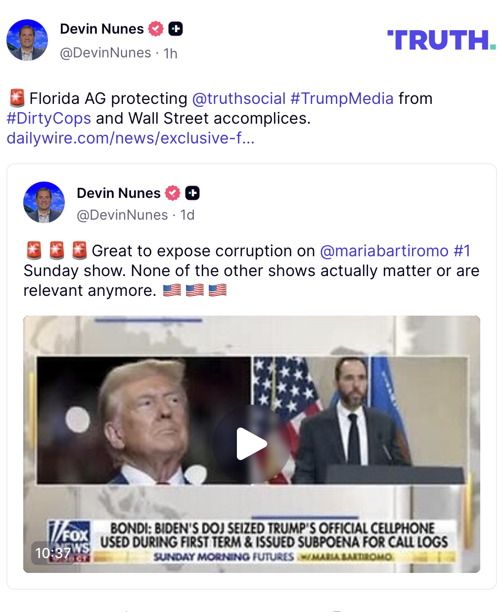 Following the shocking revelation that Special Counsel Jack Smith secretly subpoenaed J.P. Morgan Chase for our company's bank records, Florida Attorney General James Uthmeier announced today that his office is opening an investigation into J.P. Morgan's cooperation with Smith's baseless probe as well as its efforts to debank us. You can read more about this breaking news here: