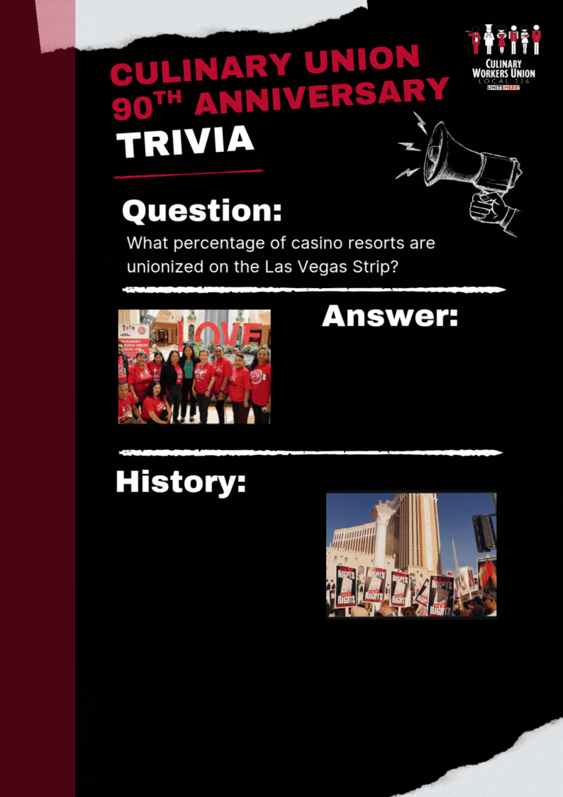 Play our trivia each week on social media to learn more about the Culinary Union's history of fighting & winning a better life for hospitality workers.