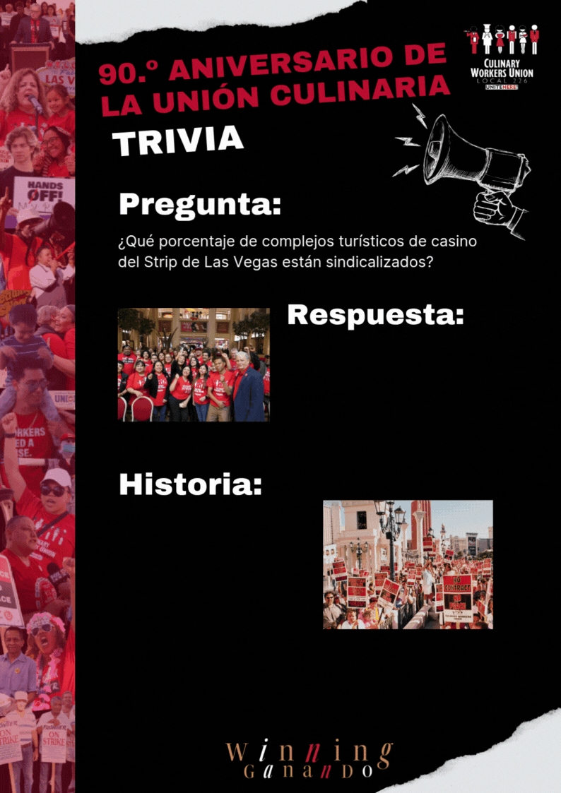 Juega a nuestra trivia cada semana en redes sociales para descubrir m谩s sobre la historia de la Uni贸n Culinaria que ha luchado por una vida mejor para los trabajadores de la hosteler铆a.