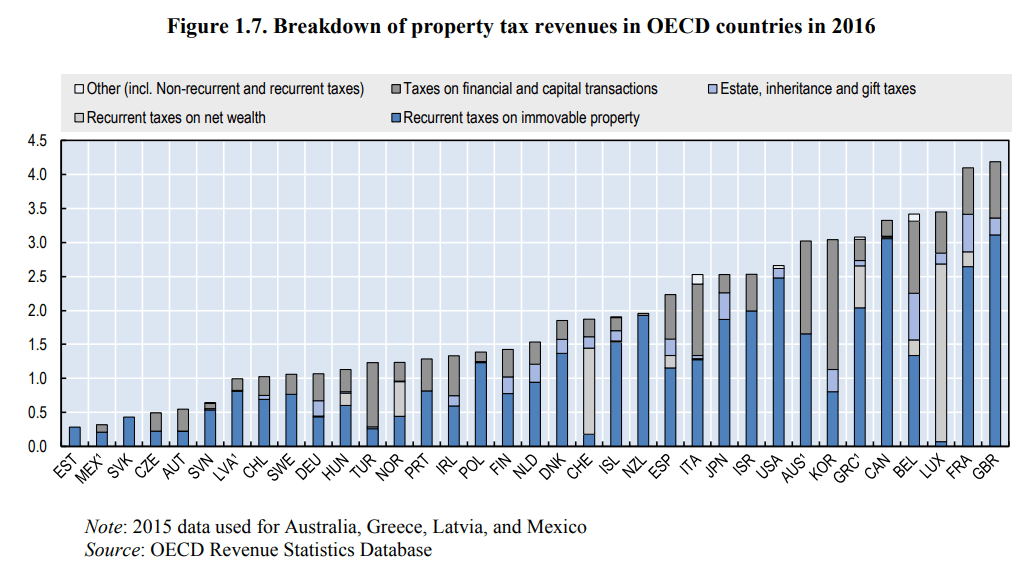 by David Starkie Property taxes are flavour of the month in the lead-up to the Chancellor’s late November budget with much discussion taking place of how a change in the way property is taxed could make a significant contribution to the budgetary black hole Ms Reeves is aiming to fix to get Britain growing again. Although a popular solution on the left of politics, taxing property, specifically land, has significant support from economic theorists (it is seen potentially as a tax on economic rent minimising distortionary effects on the wider economy) and has a distinctive historical pedegree. William of Normandy on conquering England in 1066 instructed data to be gathered, the Doomsday survey, in order to impose taxes on landed property. Today in the UK there are several taxes on residential property, notably on capital gains from the sale of second homes, a stamp duty transaction tax on home purchase, and local council taxes. There are also calls to extend capital gains taxes to cover the sale of primary residences, applying at least to sales at the more expensive end of the market. The nature and structure of existing taxes are not without controversy: CGT is argued to be too low and distortionary with rates out-of-kilter with higher income tax bands; stamp duty impedes transactions and thus an efficient market reallocation of homes; and council tax is based on values set in April 1991, which today do not reflect the subsequent, substantial shift in relative prices between geographical regions and housing categories. Despite this taxation mish mash and calls for more, the UK already raises more revenue via taxes on property than most OECD countries (see Chart). Helping to drive the argument for more property taxes are high levels of real price inflation in the residential property market that has occurred for most of the last half a century. Because of seemingly rapid inflation, houses are purchased not only for accommodation but as an investment vehicle, the gain from which many critics see as driven by restrictive controls on land use and thus unjustified. A couple of years ago in the Daily Telegraph I argued investing in property might not be quite the money spinner presumed because of limitations in compiling the all-important house price indices. Such indices are likely to influence a new tax regime and, therefore, it bears repeating why the standard indices might give a faulty reading of residential property price increases. In essence it is because they are not adjusted adequately for widespread, continuous, incremental quality improvements made to the existing stock of dwellings by their occupying owners; they are not true constant-quality indices. The operative word here is adequately. The major compilers of price indices, (Halifax, Nationwide and HMRC) do make considerable efforts when upgrading their nominal price data on a regular monthly basis, to adjust for sales by differing property type and for different geographical areas, using hedonic pricing methodologies. Thus, when a recently sold property is recognised as having been upgraded significantly, for example when a three-bedroom property adds an additional bedroom, it is re-classified as having four beds; its new, inflated value no longer relates to three bed properties thus distorting prices for the latter. Nevertheless, limitations remain. Only a minority of annual housing up-grades and improvements, albeit the most transformational, are allowed for by the hedonic pricing methodology. When planning permission is granted and works undertaken, an ‘improvement indicator’ (IC) is listed against a property and when next sold, it is subject to examination by the Valuations Office, a branch of HMRC, to see whether the works are such as to propel the property into a higher council tax band. We do not have comprehensive details of annual IC numbers but we do know from a Freedom of Information request some years ago that at the end of 2018, 6 per cent of properties in England and Wales had an IC attached (1.65mn) and we also know that about 20 per cent of such properties merited a council tax re-banding leaving over a million improved and up-graded properties not re-classified. It is possible, however, that these numbers scratch the surface of quality enhancements made to the existing stock of residential property. Post-1948 houses not in protected areas (conservation areas, national parks etc) can use Permitted Development Rights, to extend and upgrade in various ways: undertake loft conversions, add conservatories, garden rooms, upgrading heating systems, kitchens and bathrooms, without the need for formal planning permission (although there are complex rules to be followed). Additionally, small fortunes can be spent on landscaping gardens to enhance properties. Estimating the relevant investment spending that the price indices fail to register and incorporate is, to say the least, challenging. The house (and garden) improvement industry is of considerable size, and the challenge is to try to distinguish spending on numerous small value-enhancing improvements from large, the latter more likely captured in the hedonic methods of the indices’ compilers. Also to be allowed for and discounted in any calculation, is the undoubtably huge spending on house maintenance and repairs that are incurred to keep property in a steady state condition. ONS surveys show that the construction sector has the largest number of UK businesses and the SME component in that sector, the component most likely aligned with house improvement and renovation, numbers an astonishing 885,000. ONS statistics also show a spending of £34bn on private home repairs and maintenance in 2024. Approximately half of 1000 homeowners in a recent survey undertook renovations at a median cost of just over £21,000. With 25 million houses in the UK, the majority privately owned, those figures if extrapolated would imply implausible levels of spending on upgradin