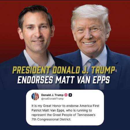 In this vital race, President Trump offered his complete and total endorsement to Matt Van Epps – a West Point graduate, combat veteran, public servant, and America First true believer. |