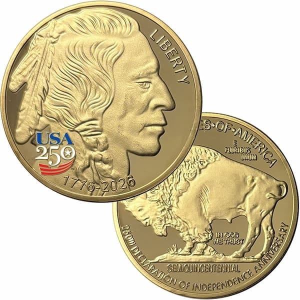 , the mint has authorized the release of this gold double-dated 1776-2026 tribute, featuring a Red, White, and Blue USA 250 Privy Mark.