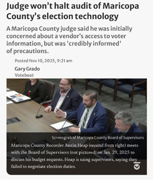 I stand with Justin Heap. He’s exposing the same crowd that let 2,288 ballots sit forgotten in Fountain Hills. The same county bosses who presided over the 2022 Election Day collapse that may have altered outcomes statewide.