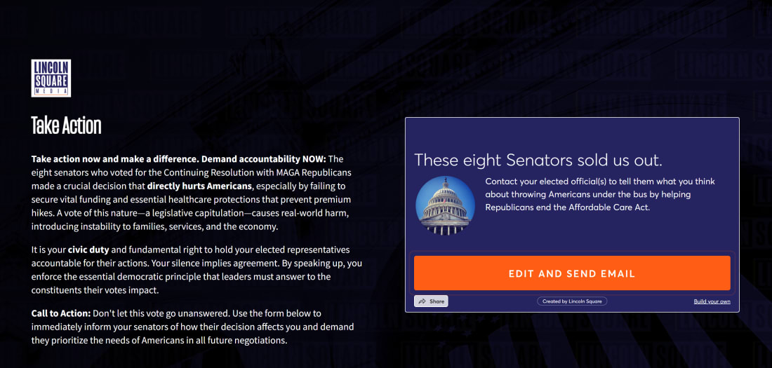 Lincoln Square launched it’s ACTION platform, giving our subscribers, and all Americans access to contact their elected representatives.