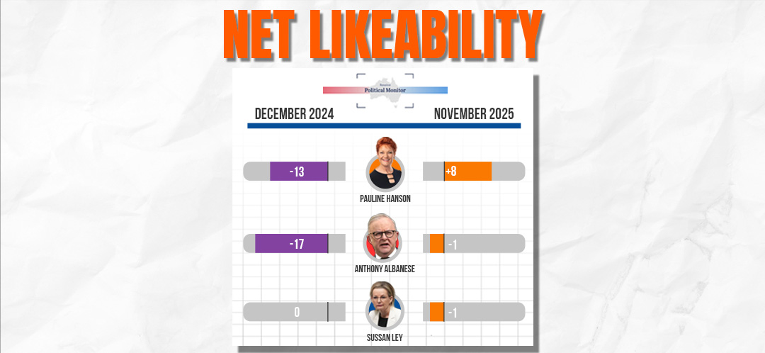 Pauline Hanson's net likability. She is now streets ahead of Sussan