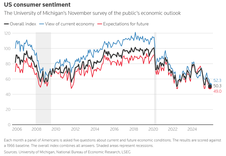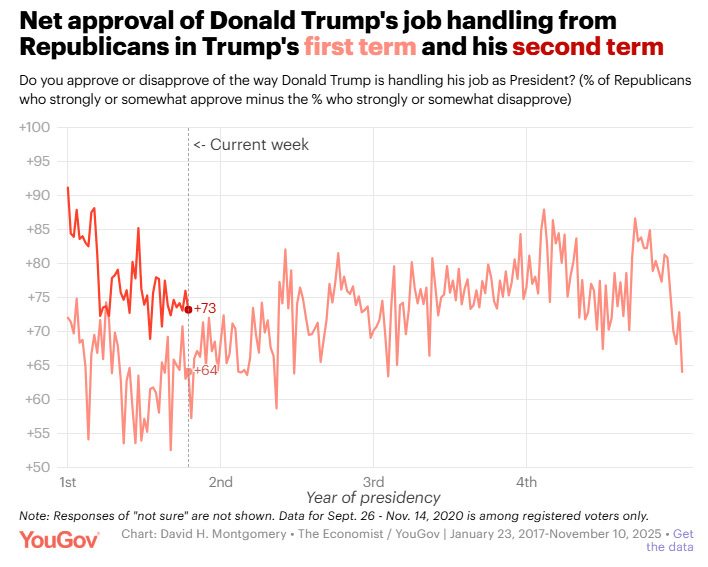 November 2025 will go down as one of the worst months of Donald Trump’s second term. The economy is unstable and increasingly serves a shrinking number of shareholders. The longest government shutdown in American history ended in a pyrrhic victory for Republicans but a humiliating rout for Democrats. The release of the Epstein emails has roiled MAGA and left a permanent black mark on Trump. Americans are clearly showing their displeasure. An AP/NORC poll released this week found Trump’s net disapproval at 62%. At the height of the pandemic—when the death toll reached one million—this same pollster recorded Trump’s net disapproval at 65%. Approaching that dubious milestone almost certainly spells disaster for Republicans in the 2026 midterm elections. The poll also found notable declines in Trump’s standing among Republicans. In March, 81% of Republicans approved of his handling of the federal government; today, that number has dropped to 68%. The latest Economist/YouGov poll confirmed this slide in Republican support. Twelve percent of Republicans said they disapprove of Trump’s performance as president—a small but significant sign that discontent is growing within the GOP base. That same YouGov poll found Democrats leading by 7 points on the generic congressional ballot. If that margin holds—or grows by even one or two points—Democrats could sweep the midterm elections despite redistricting hurdles. It’s clear Trump’s numbers are falling because the economy is wobbling. U.S. consumer sentiment is now at a 3.5-year low, according to the University of Michigan’s November survey. Headlines about layoffs—especially in the tech sector—are becoming increasingly common. The stock market had been the economy’s only bright spot, but at the time of writing, Wall Street closed sharply lower. It’s no surprise, then, that 44% of Americans in a YouGov poll earlier this month said the state of the economy is poor. The impact of the Epstein email release hasn’t yet been fully captured in polling, but it appears to have thrown MAGA into disarray. Combined with the H-1B controversy, it threatens to fracture the Republican coalition. In terms of polling, we’ve reached a point of no return. Americans are loudly rejecting the chaos of this administration—and they’re unlikely to change their minds in the next two and a half years, let alone before the 2026 midterms. DON’T MISS BEHIND THE NUMBERS WITH RICK & ANDREW WILSON AT 10AM ET FRIDAY! You’re currently a free subscriber to Lincoln Square Media. For full access to our content, our Lincoln Loyal community, and to help us amplify the facts about the assault on our rights and freedoms, please consider upgrading your subscription today with this limited-time offer. Lock in this special rate today. Not ready to subscribe? Make a one-time donation of $10 or more to support our work amplifying the facts on social media, targeted to voters in red states and districts that we can help flip. Every $10 reaches 1000 Americans. The Truth needs a voice. Your donation will help us amplify it. Want to help amplify this post? Please leave a comment and tell us what you think. |