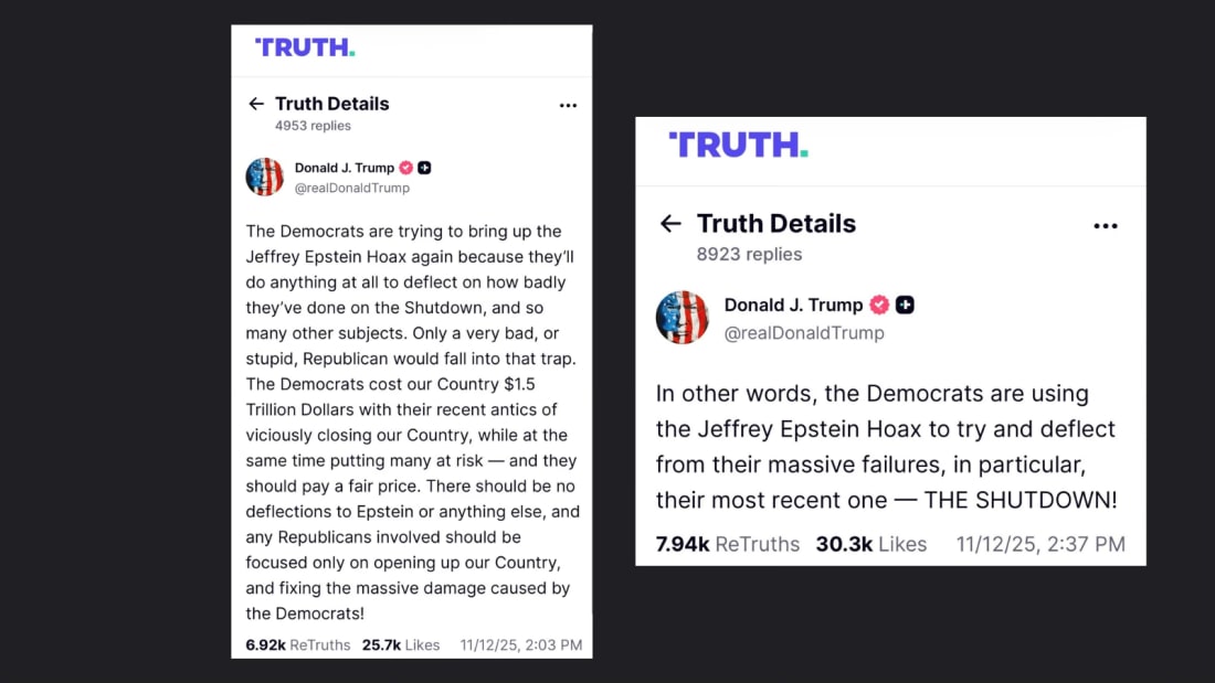 He never even bothered to name the other six entries, because in his world, the specifics don’t matter. The emotion does. By calling everything a hoax, he’s telling supporters: “Reality is optional.” 🔢 He Numbers His Hoaxes Like TV Episodes Trump doesn’t just call things hoaxes. He categorizes them like sequels in a reality-TV franchise built around his own misconduct: Impeachment Hoax #1. He rolls them out like branded episodes, each one designed to erase accountability and rewrite the narrative in real time. 🧨 The Latest Hoax: Epstein Now he’s added one more to the list. In the face of more than 20,000 newly unsealed Epstein emails, documents that mention Trump multiple times and link him to the disgraced financier’s inner circle, he brushed it all off as “The Jeffrey Epstein Hoax.” The same man who dismissed climate science as a “hoax” now calls evidence of abuse and exploitation a hoax. Why This Matters Words shape reality. When a president, especially one now back in power, labels truth itself as a hoax, he’s not just dodging accountability. He’s teaching millions to distrust the very idea of objective fact. I saw it firsthand inside the Trump administration: