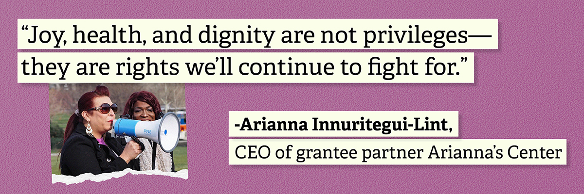 Dear John, Our incredible grantee partners are at the forefront of grassroots movements across the country. Arianna Innuritegui-Lint faced stigma, legal barriers, and healthcare disparities when she immigrated to the U.S.—but she later found strength in advocacy. Innuritegui-Lint founded Arianna's Center, an organization that aims to engage, empower, and uplift the transgender community of South Florida and Puerto Rico. In a recent conversation with Arianna, she reaffirmed, “joy, health, and dignity are not privileges—they are rights we’ll continue to fight for.” At Ms. Foundation, we fund and amplify movement leaders, like Arianna, who are ensuring the next generation has more, not fewer, rights than we do. When you donate to Ms. Foundation, you support this essential and often lifesaving work. |
