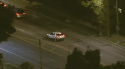 Los Angeles Police Department officers and family members pursued two kids who allegedly stole their mom's car. Officers started chasing the silver Ford Fusion through surface streets in Mid City, Beverly Hills, into West Los Angeles, onto the northbound 405 Freeway, ultimately ending in a Reseda residential neighborhood. The driver varied between controlled and reckless driving, reaching speeds up to 60 mph on surface streets and driving on the shoulder of the 405 Freeway. The driver exited the freeway and moved onto surface streets in the San Fernando Valley. While in Reseda, a white Dodge Durango started chasing the suspect until he crashed into a curb near Hesperia Avenue and Vanowen Street. The driver and passenger ran out of the car, and both were quickly detained by police. LAPD said the occupants of the white Dodge Durango were family members of the suspect.